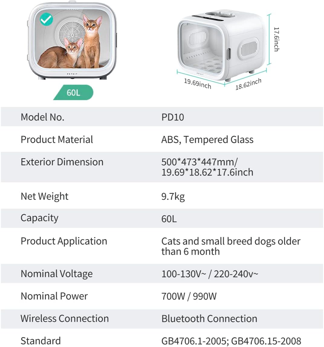 - 🐱🐶APP CONTROL, AUTOMTIC PET DRYER - Unlike normal pet dryer blaster, PETKIT Airsalon Max dog hair dryer box will free your hands and groom a nice-looking for your pets. You don’t need to hold the drying machine to blow pet hair all time time and deshedding pet hair will not fly anywhere while drying
